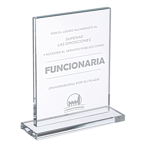 Porque en la oposición no hay medallas, pero debería haberlas. Este trofeo de cristal es el reconocimiento que todo opositor se merece: por aguantar, por estudiar, por no perder la cabeza (del todo). Ideal para celebrar la plaza… o para motivar antes del sprint final. Porque en el fondo, quien oposita ya es un campeón.